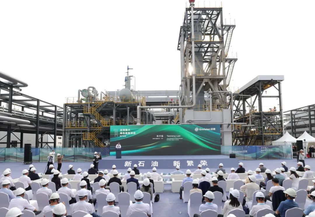 7月8日,由遠(yuǎn)景打造的全球最大152萬(wàn)噸綠色氫氨項(xiàng)目首期32萬(wàn)噸在內(nèi)蒙古赤峰建成投產(chǎn),成為全球首個(gè)商業(yè)化運(yùn)營(yíng)的綠色氫氨工程。遠(yuǎn)景董事長(zhǎng)張雷和赤峰市市長(zhǎng)欒天猛分別致辭,并與來自全球的嘉賓見證這一新能源發(fā)展的歷史時(shí)刻。
