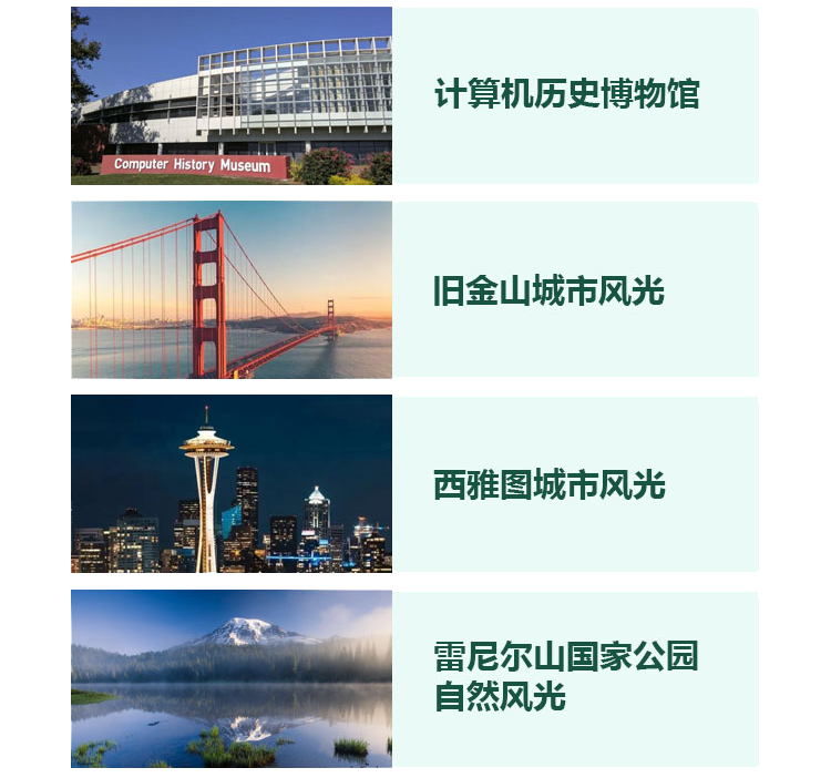 同時,我們也精心安排了舊金山與西雅圖的人文盛宴——探訪計算機歷史博物館,目睹金門大橋的宏偉,體驗漁人碼頭的熱鬧,感受太空針?biāo)默F(xiàn)代氣息和派克市場的活力四射……沉浸式體驗科技與自然、現(xiàn)代與歷史的完美融合。